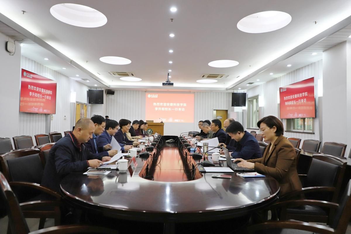 10月30日,安徽科技学院校长李升和、副校长王孝义一行来校调研,校长邢卫红接待来访一行。