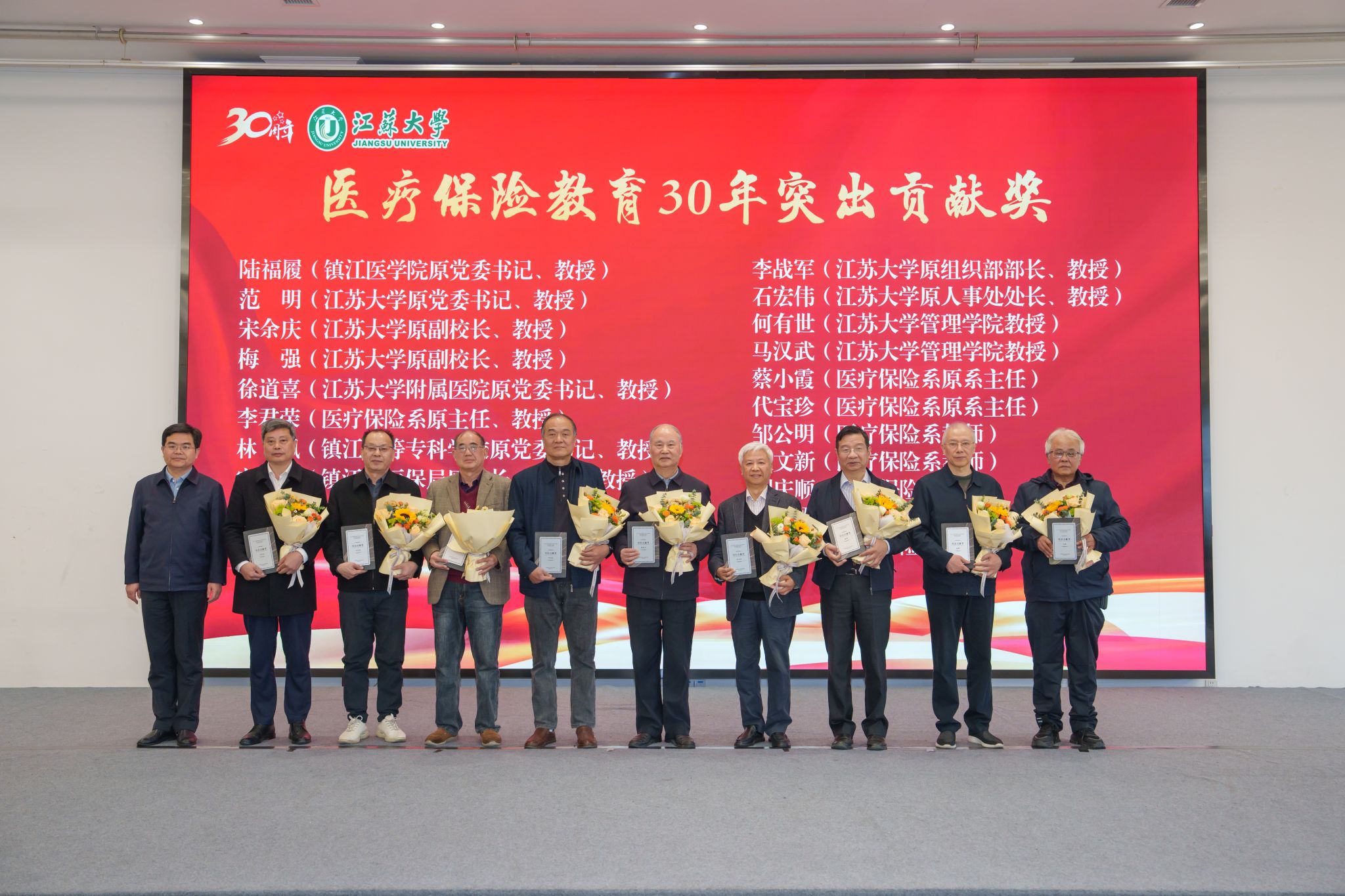 李洪波为“医疗保险教育30年突出贡献奖”获奖代表颁发证书。