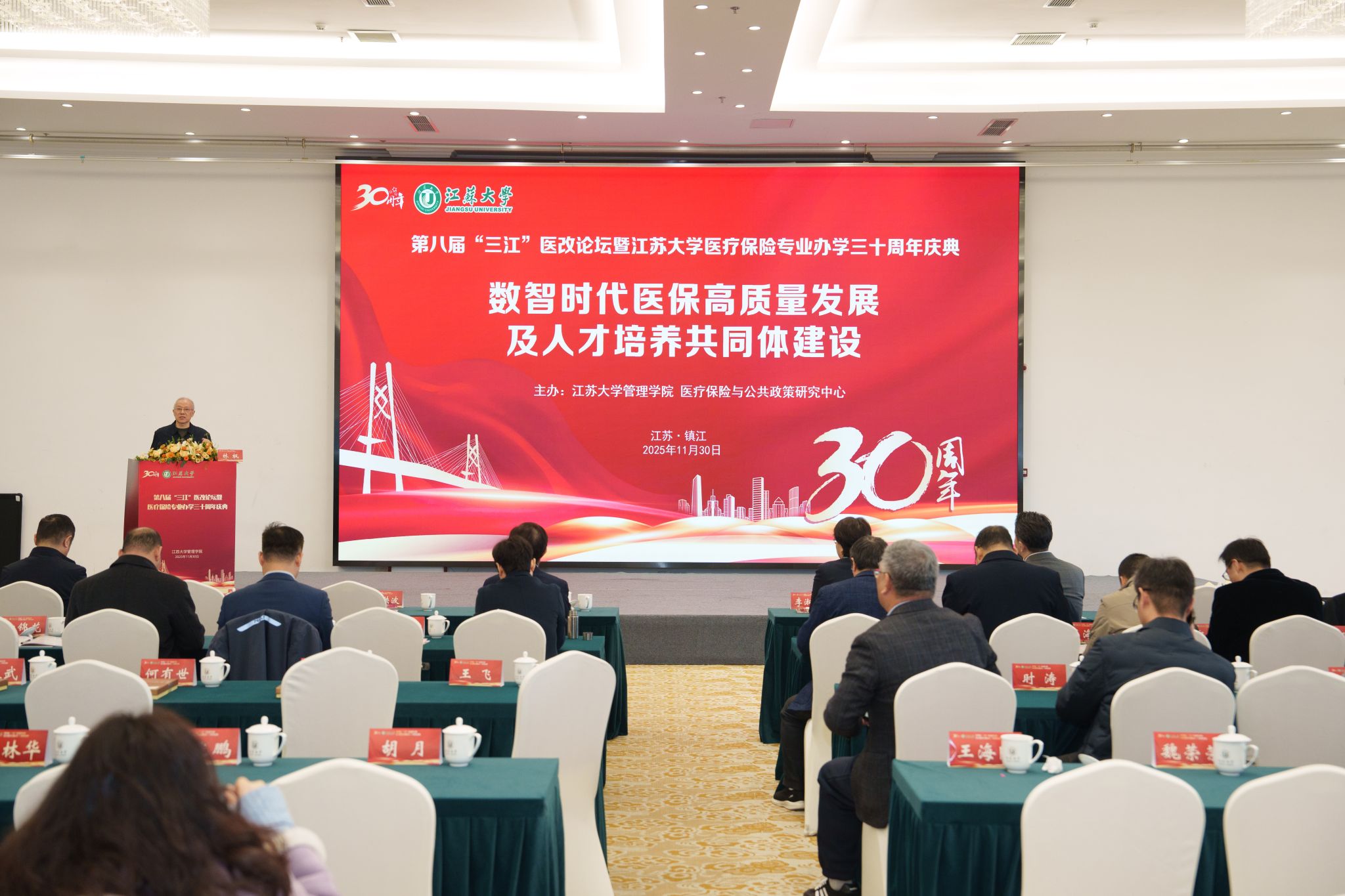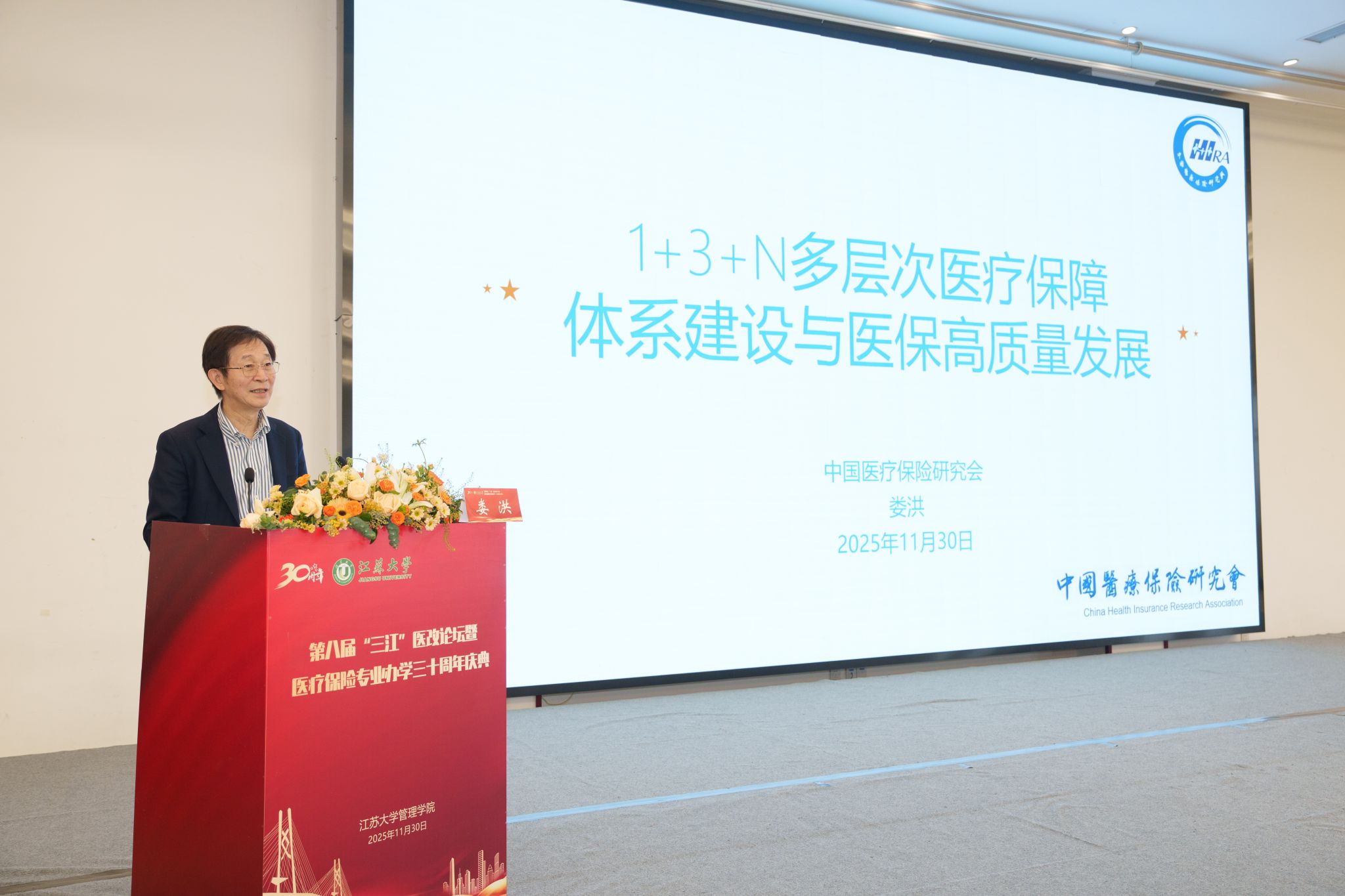 11月30日,第八届“三江”医改论坛暨九州手机网页版登录入口医疗保险专业办学30周年庆典在校举行。校党委书记李洪波,中国医疗保险研究会副会长、国务院参事室特约研究员、国家医疗保障研究院院长娄洪,国家医保局医药管理司原副司长李淑春,国家卫健委卫生发展研究中心医药卫生技术评估与创新发展部部长顾雪非,以及来自全国40余所开设医疗保险相关专业高校的代表、校内外嘉宾、我校医保专业校友和在校师生300余人参加活动。庆典仪式由管理学院院长朱永跃主持。