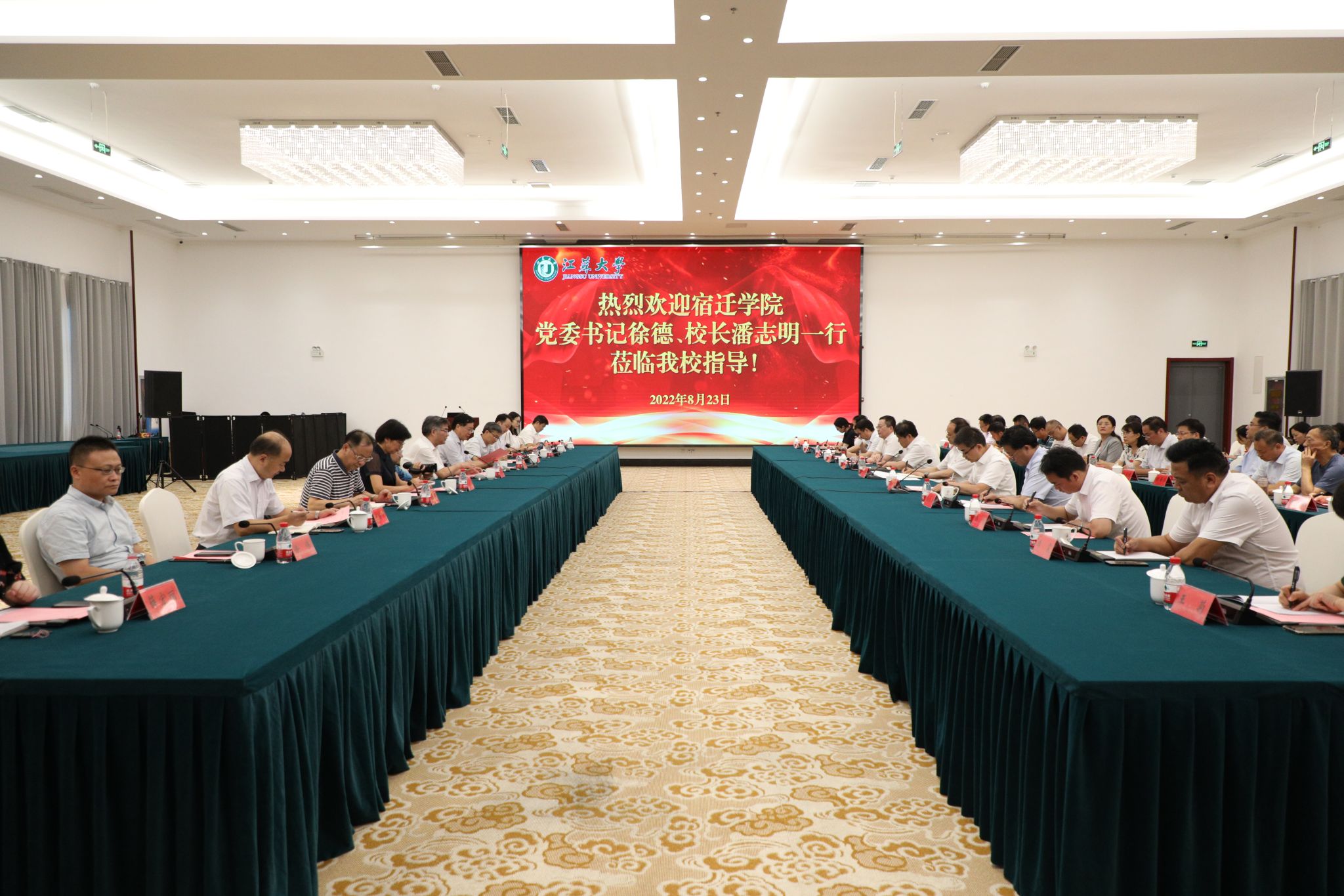 8月23日,宿迁学院党委书记徐德、校长潘志明一行来校调研。校党委书记袁寿其在青教公寓多功能厅主持召开座谈会,副校长田立新、李红参加座谈会。